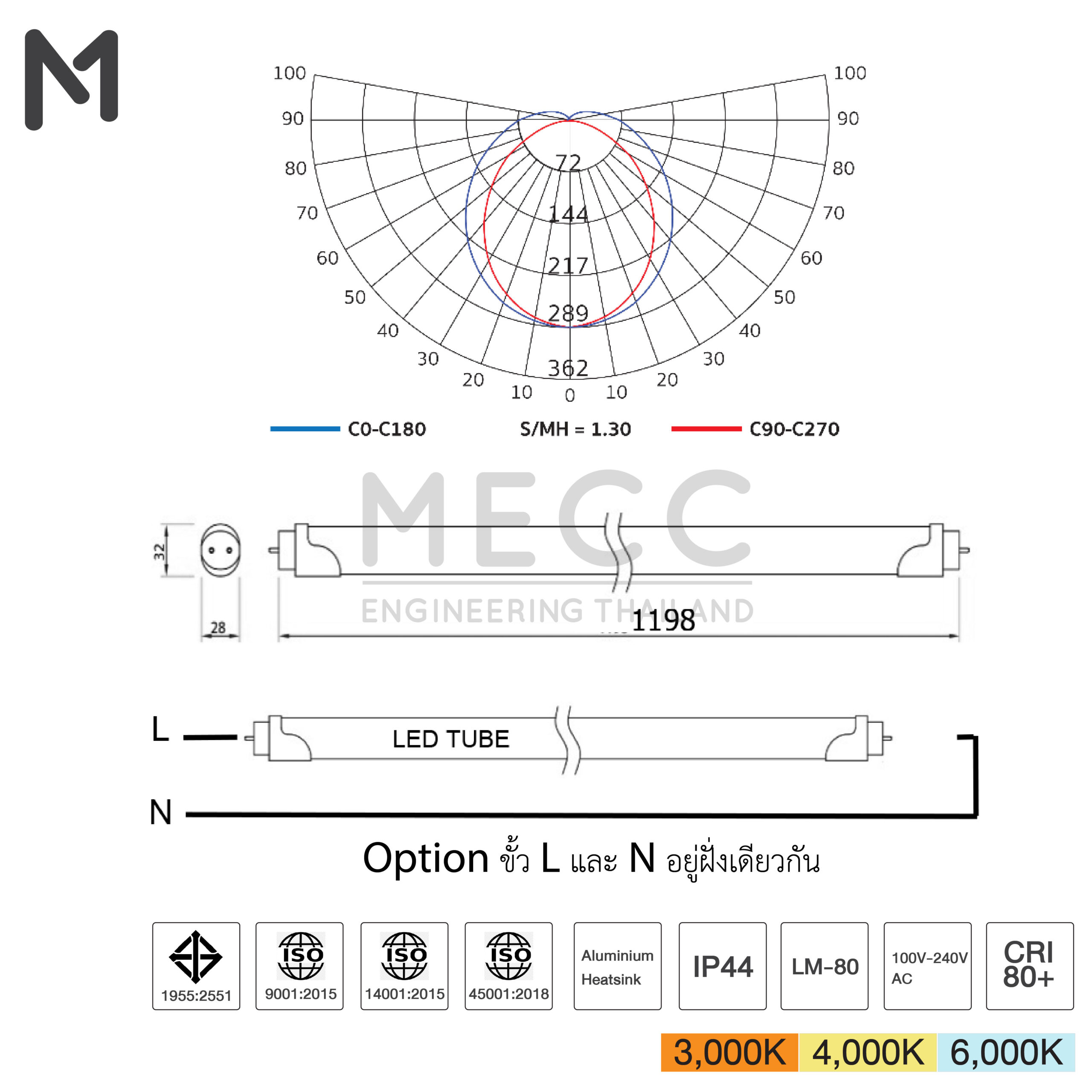Color Rendering Index (ความถูกต้องของสี) : ≥80 Ra