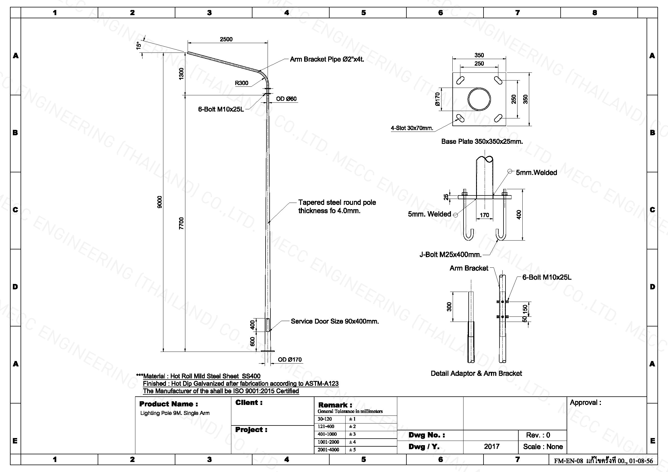 เสาไฟกิ่งเดี่ยว 9 เมตร ( Single-Bracket Lighting Pole 9 meters )