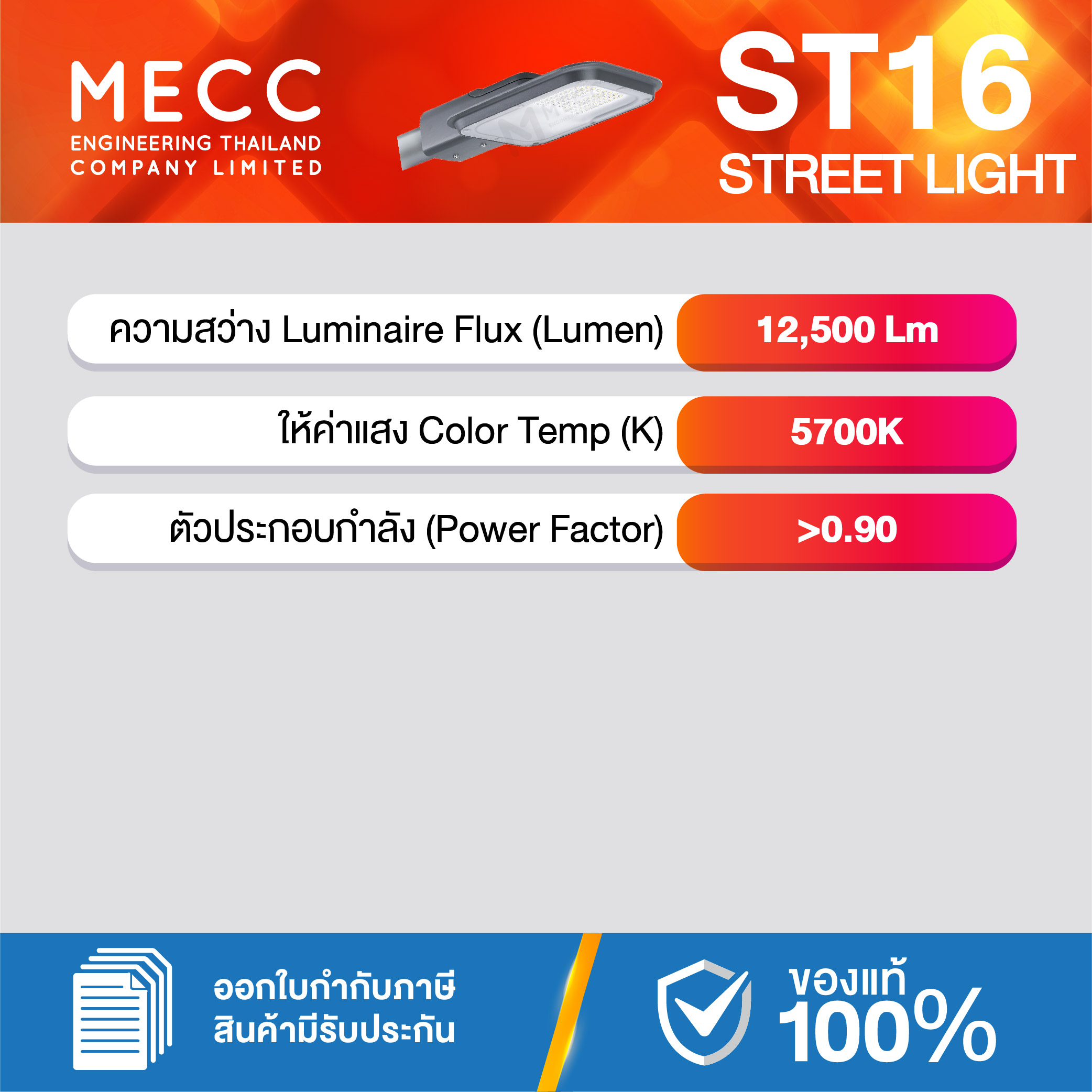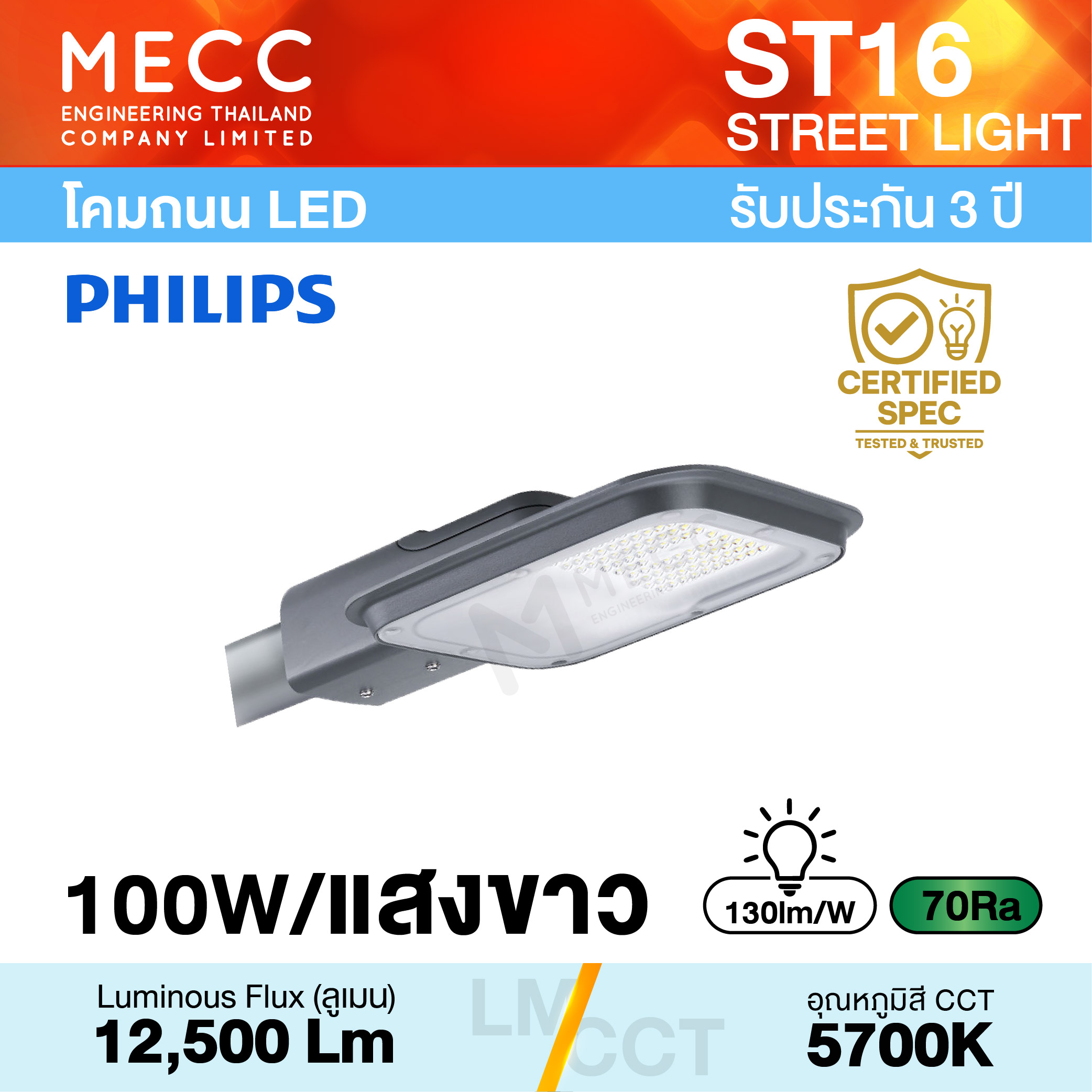 Luminous Flux : ฟลักซ์การส่องสว่าง (Lumen) : 12,500lm