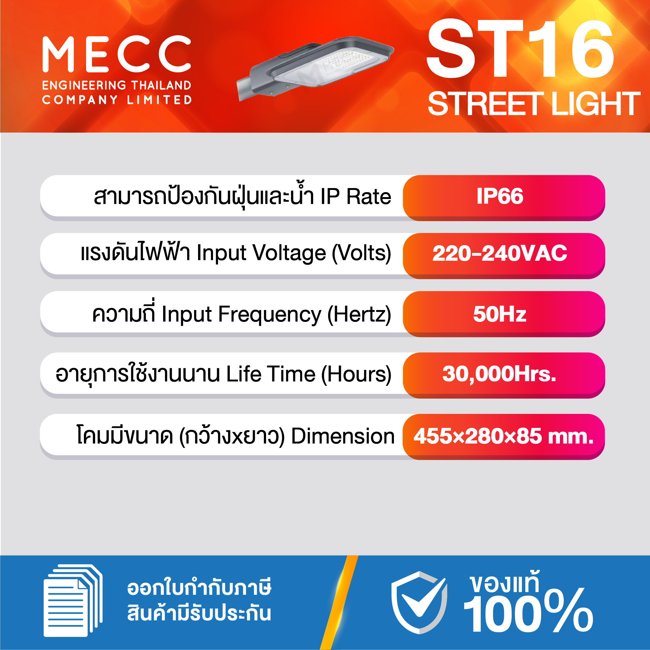 Input Voltages : แรงดันไฟฟ้า : 220-240V