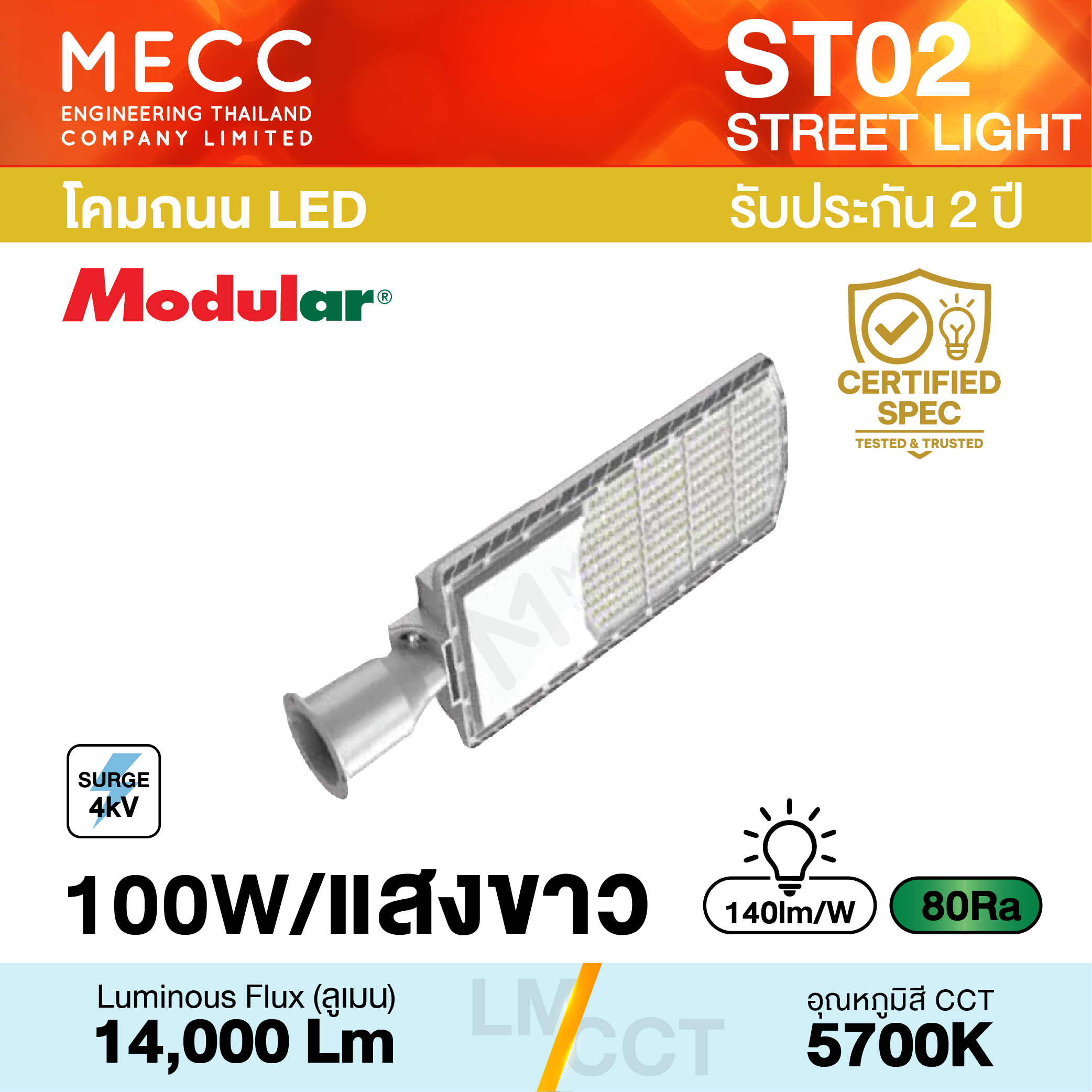 โคมถนน Streetlight LED 100W 5700K 14,000lm รุ่น ST02 แสงขาว