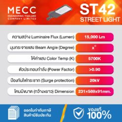 โคมถนน Streetlight LED 100W 5700K 15,000lm รุ่น ST42 แสงขาว