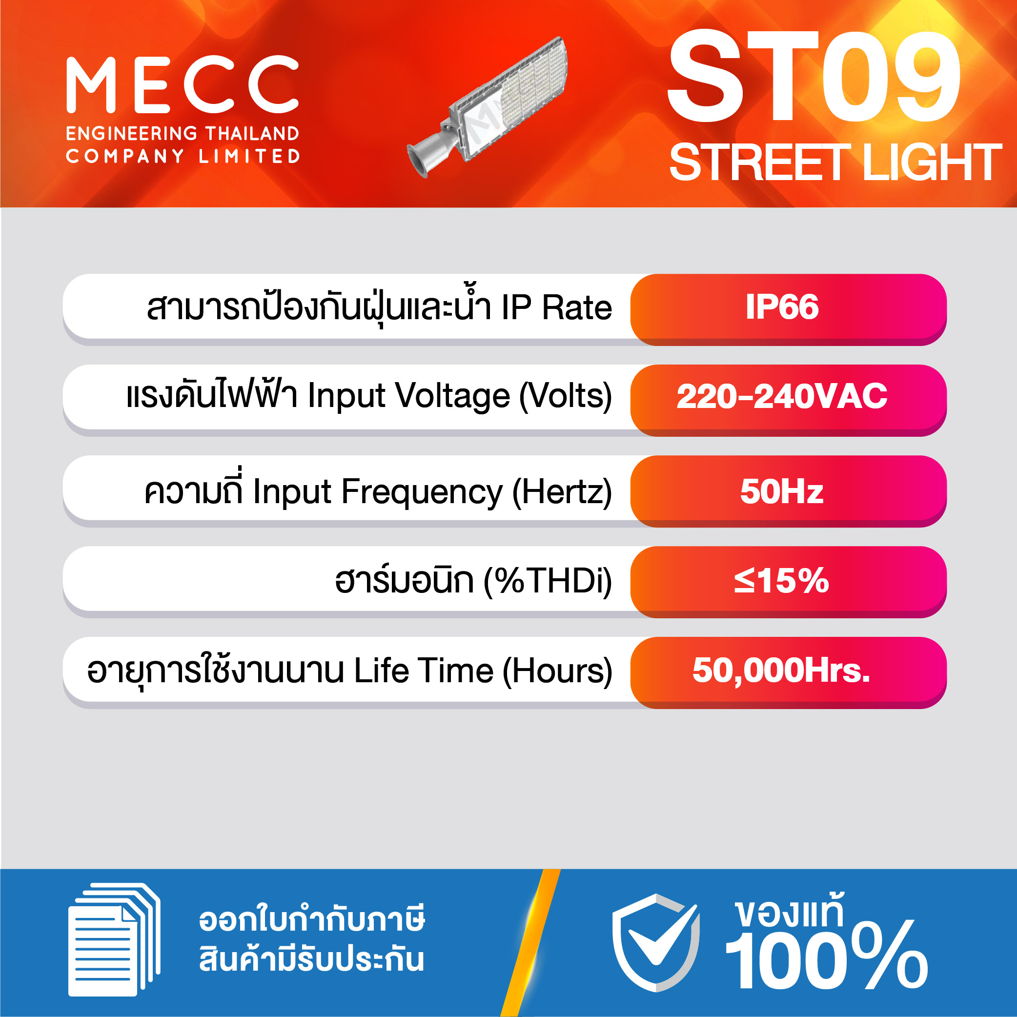 Input Voltages : แรงดันไฟฟ้า : 220-240V