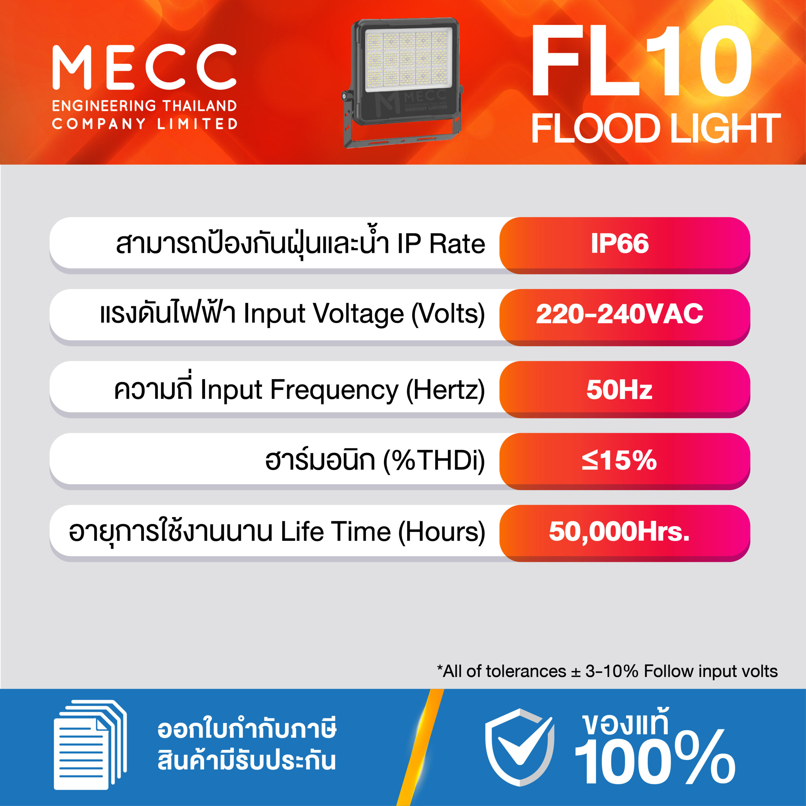 โคมฟลัดไลท์ Floodlight LED 200W 5700K 28,000lm รุ่น FL10 แสงขาว