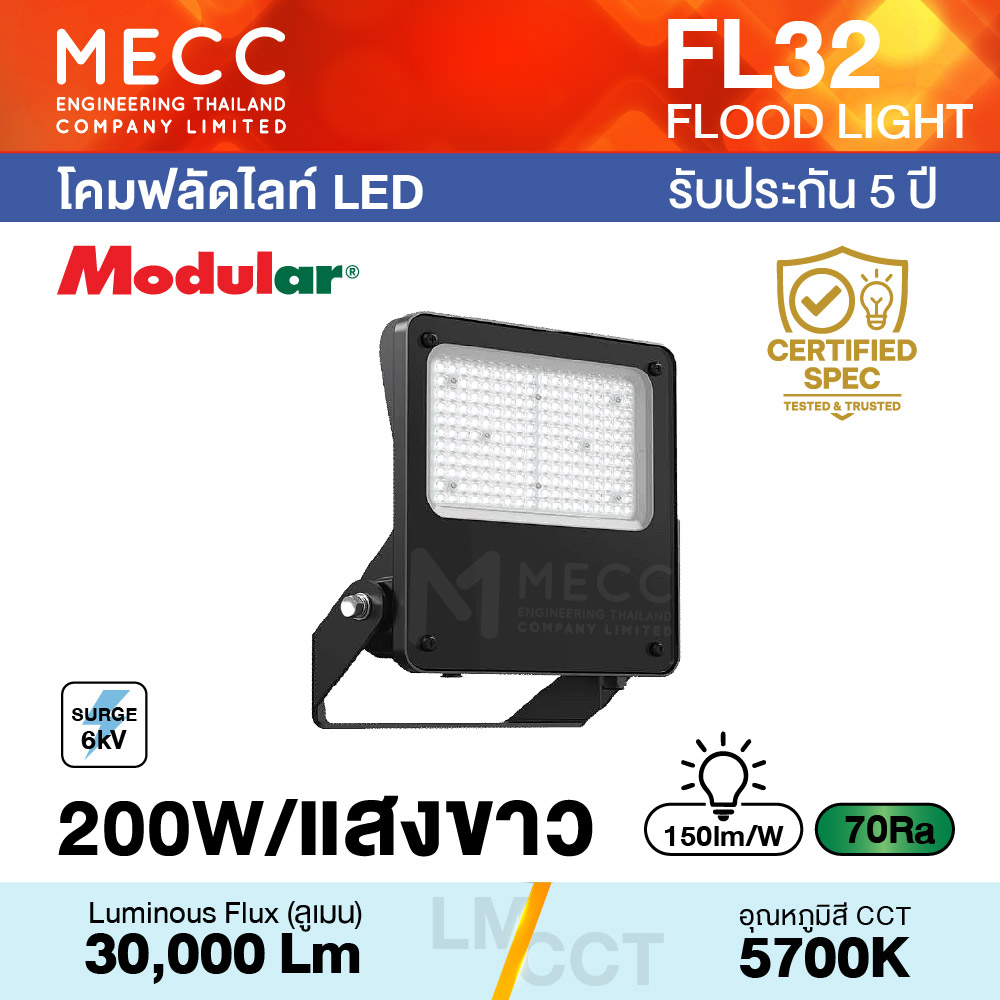 โคมฟลัดไลท์ Floodlight LED 200W 5700K 30,000lm รุ่น FL32 แสงขาว