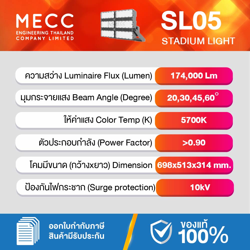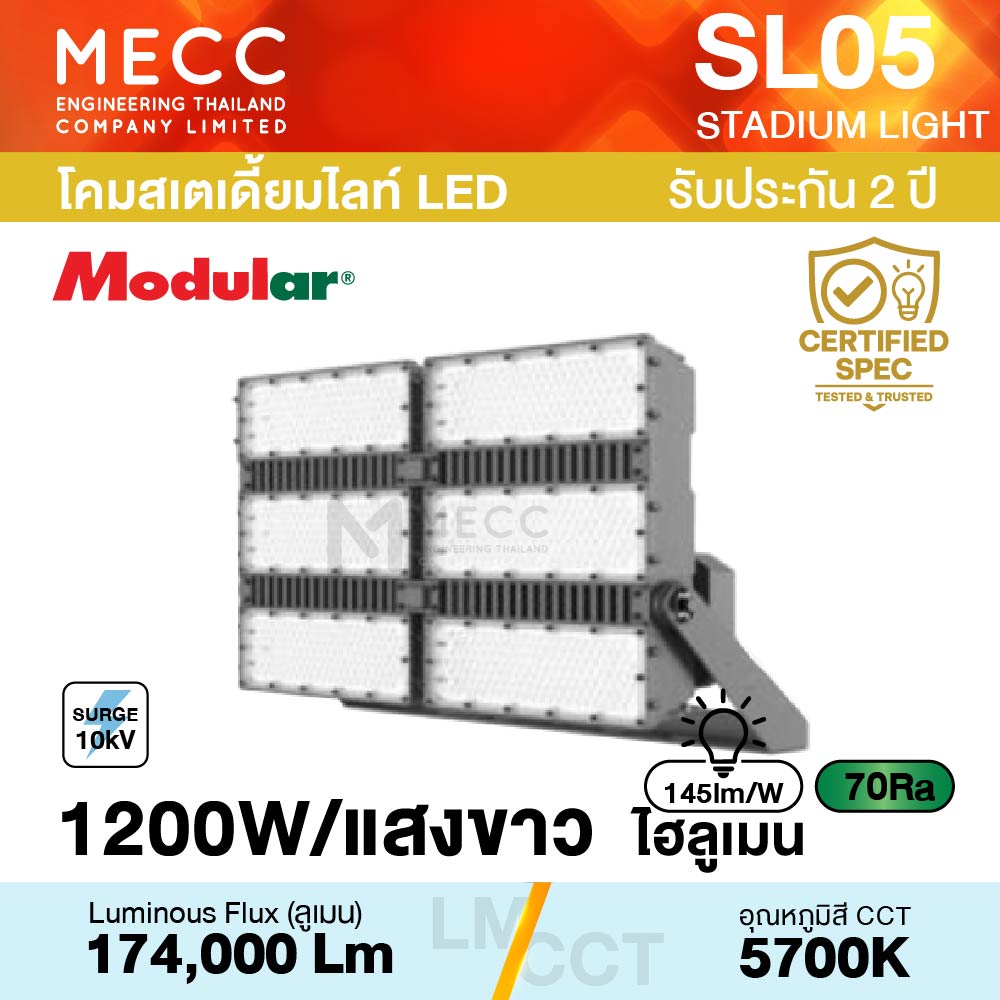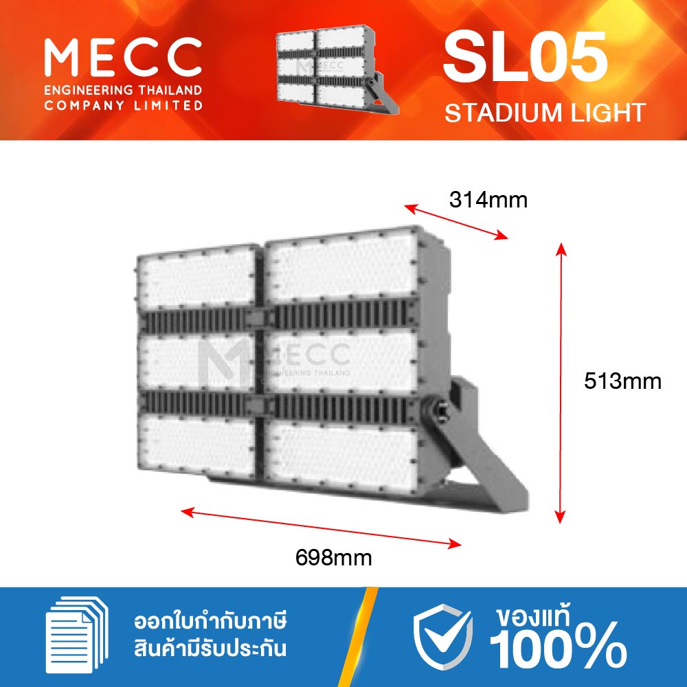 โคมสเตเดี้ยมไลท์ Stadiumlight LED 1200W 5700K 174,000lm รุ่น SL05 แสงขาว