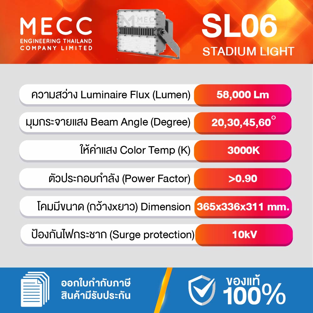 โคมสเตเดี้ยมไลท์ Stadiumlight LED 400W 5700K 58,000lm รุ่น SL06 แสงส้ม