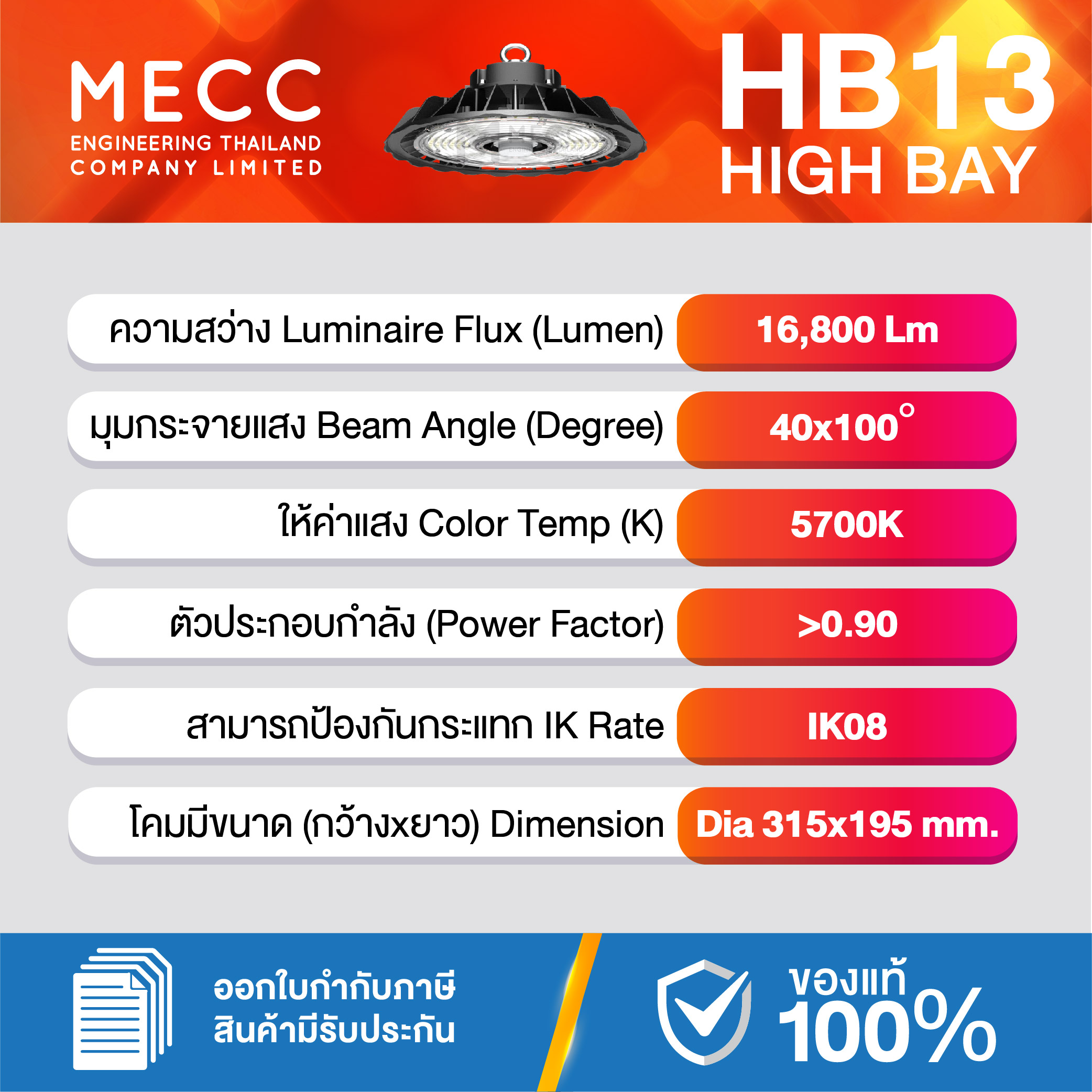 โคมไฮเบย์ Hi-Bay LED 120W 5700K 16,800lm รุ่น HB13 แสงขาว แสงเหลี่ยม