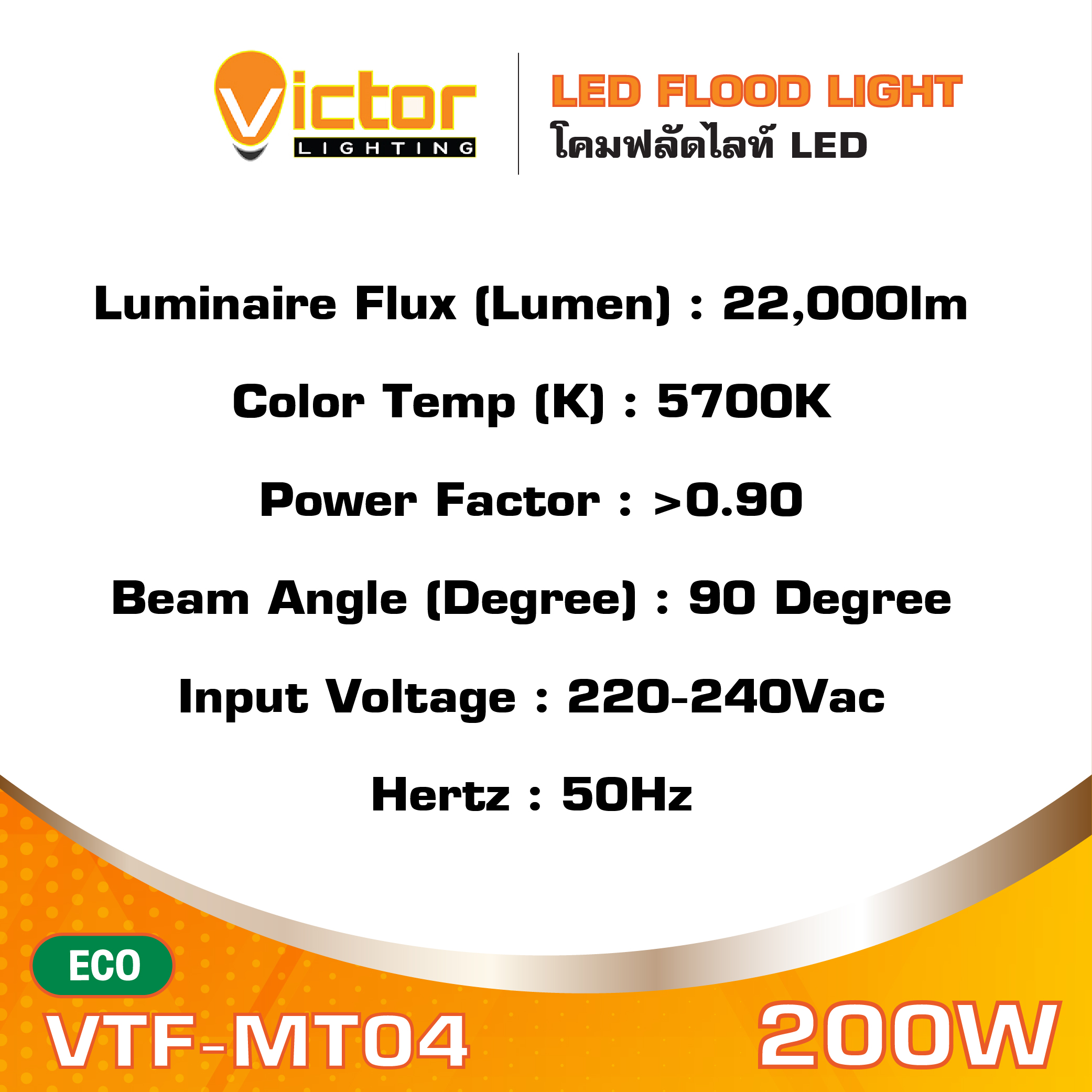 โคมฟลัดไลท์ Floodlight LED 200W 5700K 22,000lm รุ่น VTF-MT04 แสงขาว