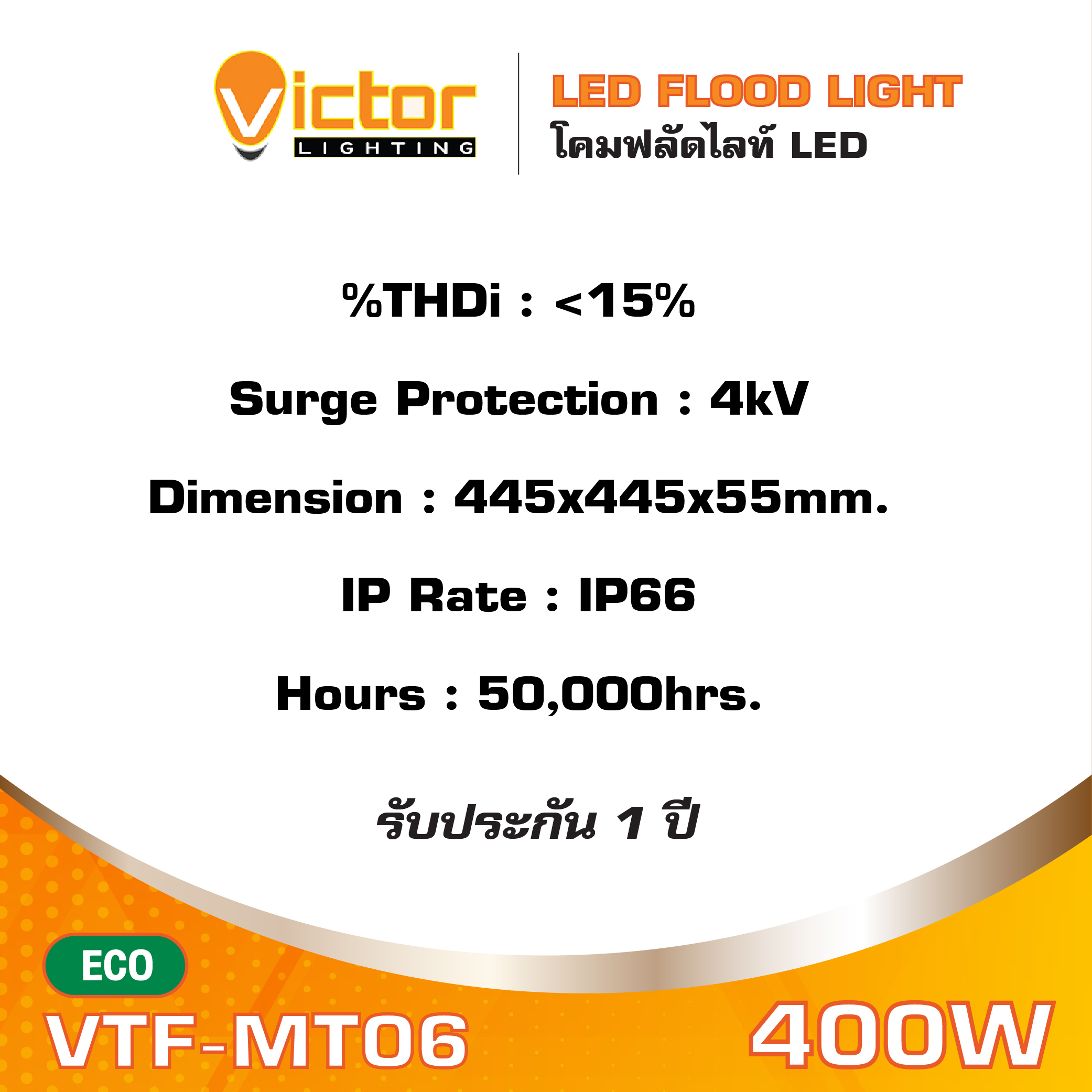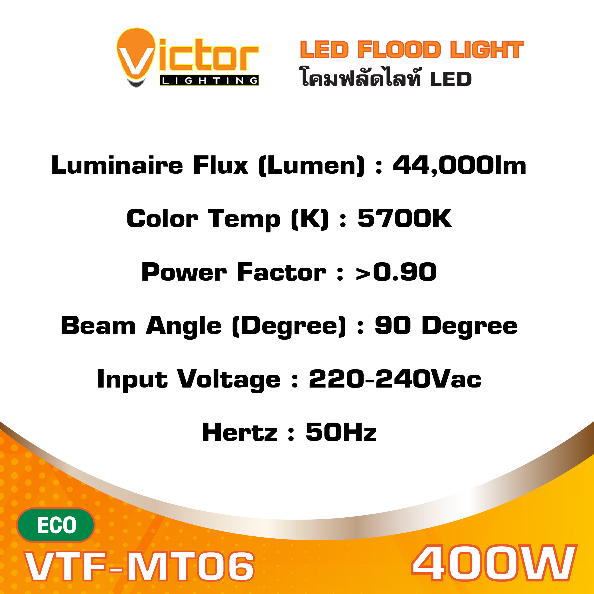 โคมฟลัดไลท์ Floodlight LED 400W 5700K 44,000lm รุ่น VTF-MT06 แสงขาว