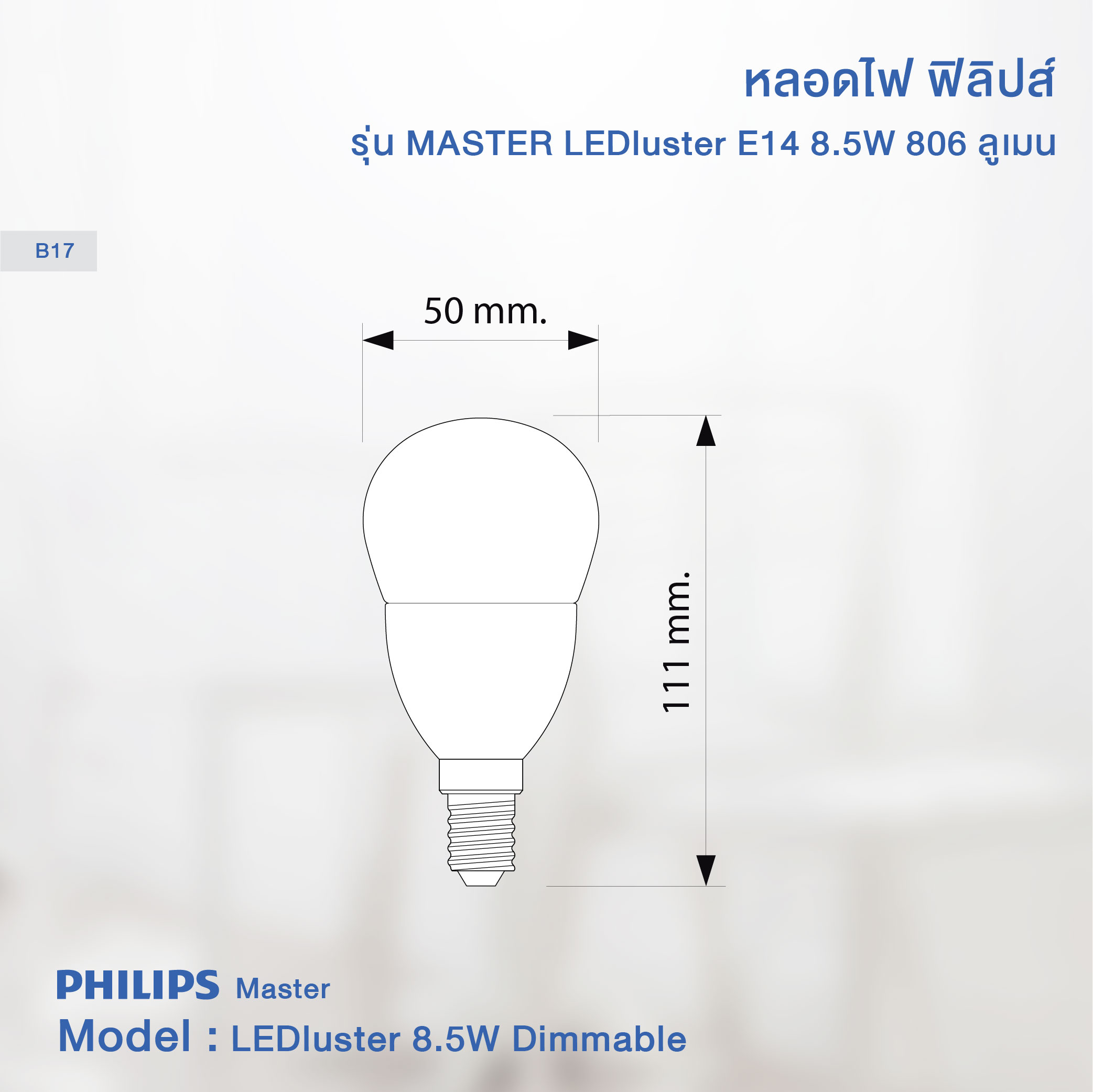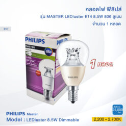 (ฟิลิปส์ หลอดไฟMaster ชนิดหลอดลัสเตอร์ 8.5W ขั้วE14 ทรงP48 แสงวอร์ม *ปรับหรี่ได้*)