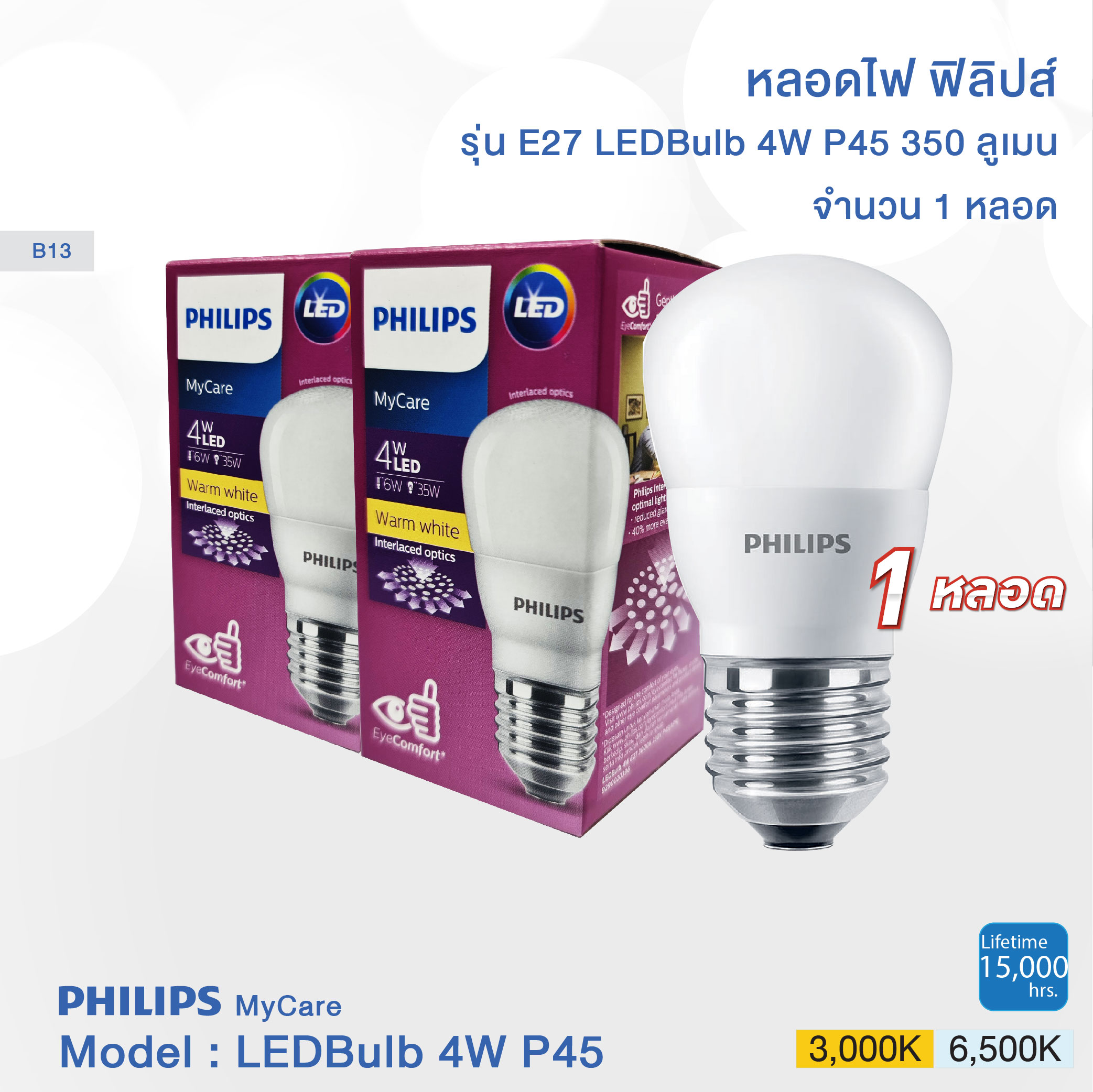 PHILIPS MyCare LED BULB 4W E27 P45 3000K/6500K
