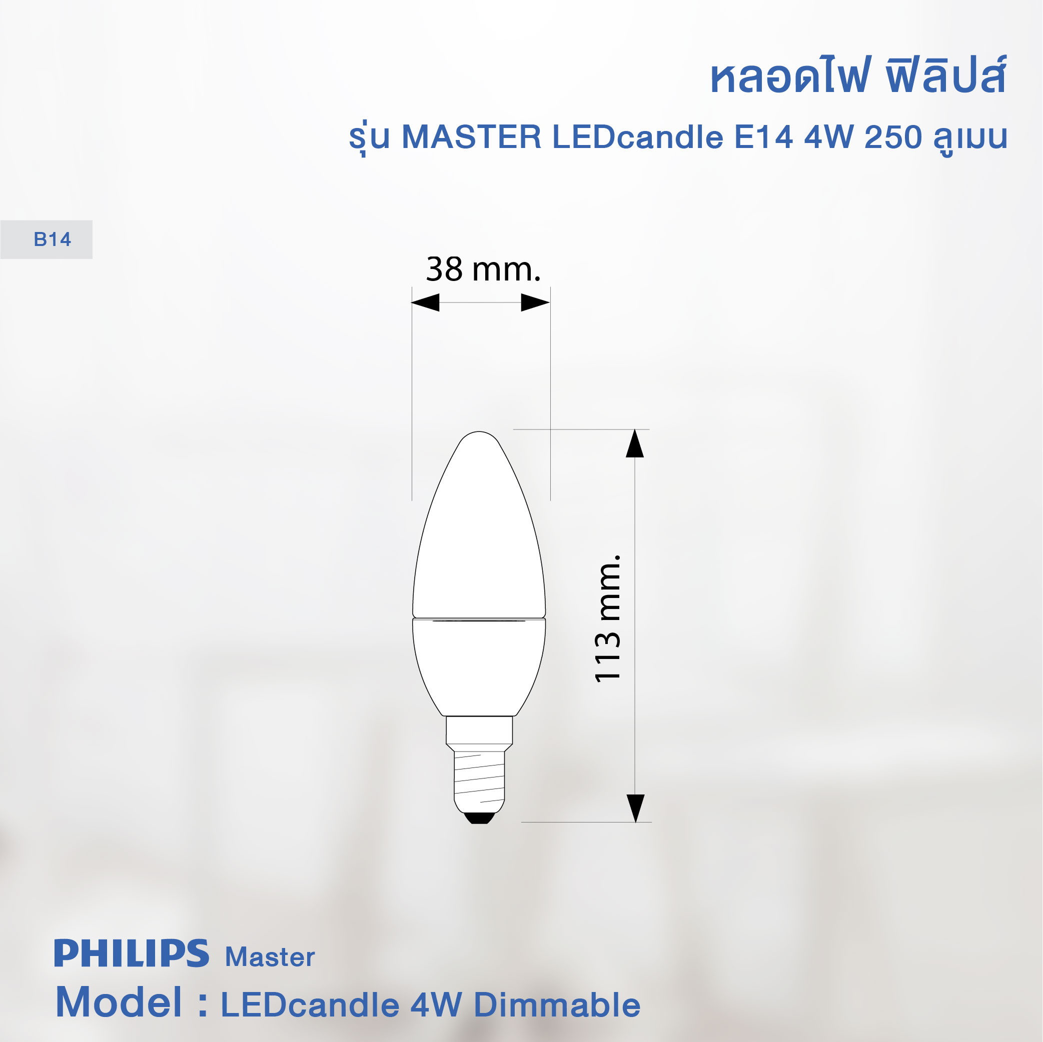 - ขนาดหลอดไฟ 38 x สูง 113 mm.