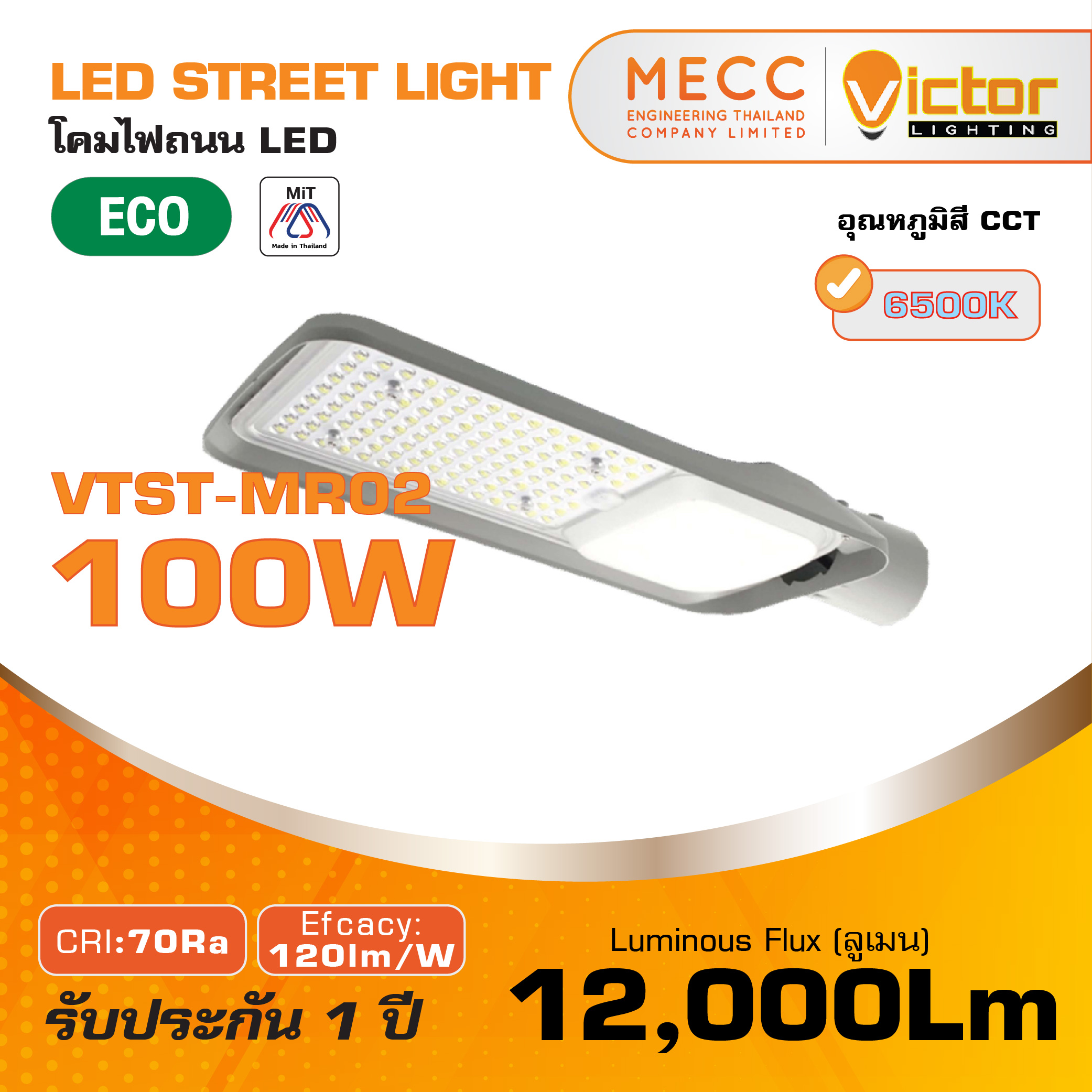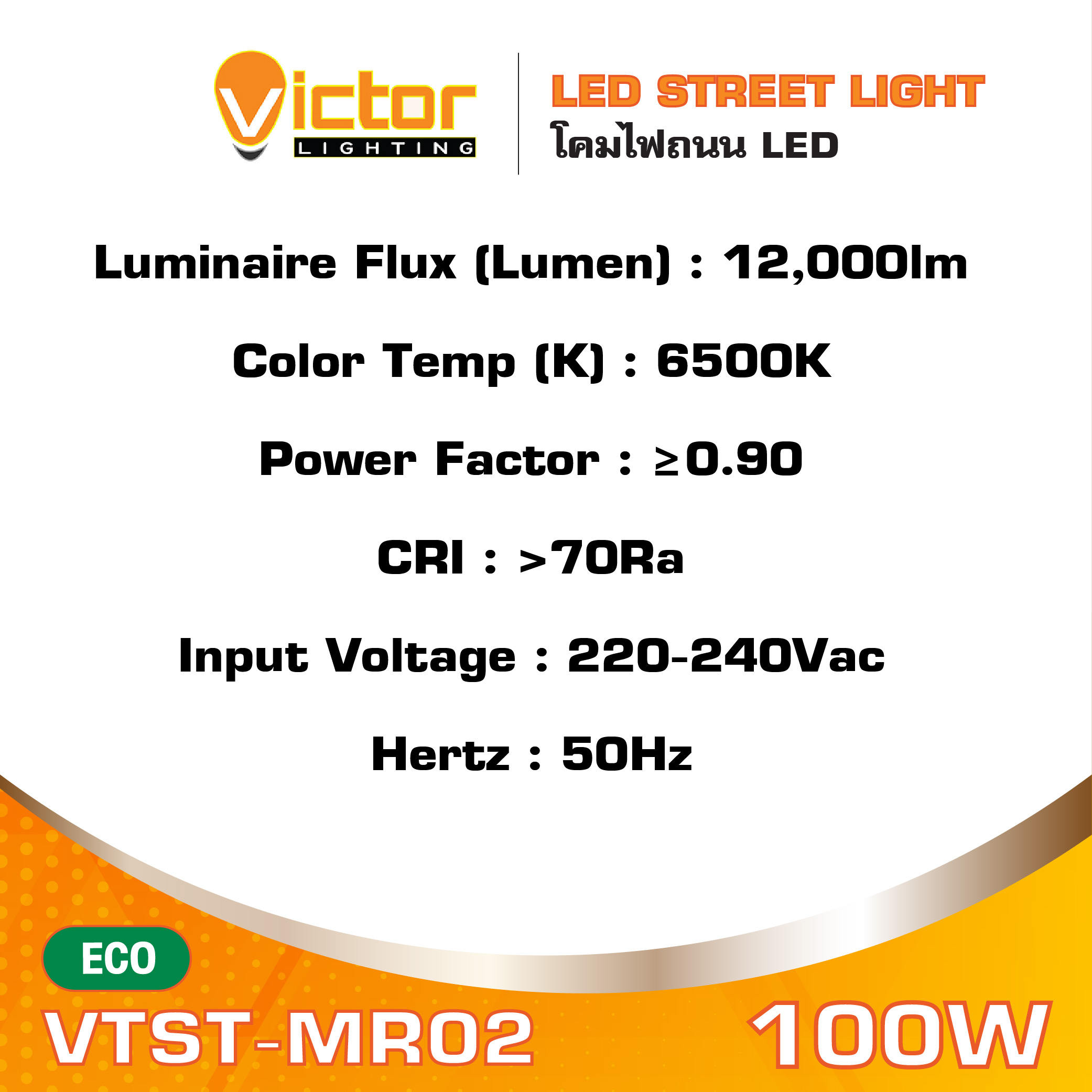 โคมถนน Streetlight LED 100W 6500K 12,000lm รุ่น VTST-MR02 แสงขาว