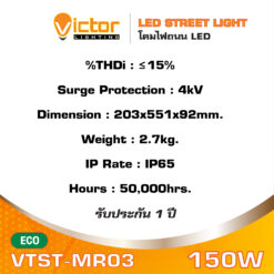 โคมถนน Streetlight LED 150W 6500K 18,000lm รุ่น VTST-MR03 แสงขาว